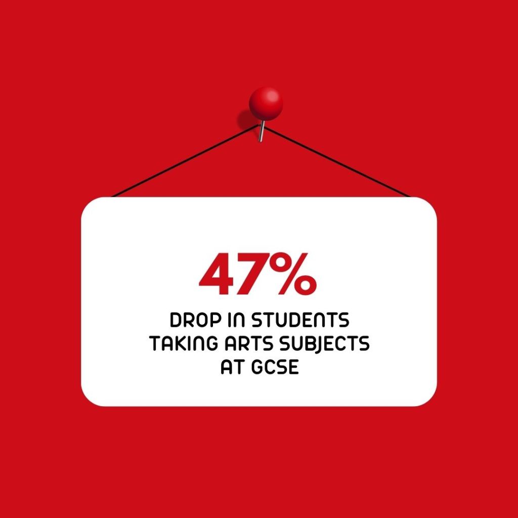 That someone to the right of the political spectrum has this reaction isn’t much of a surprise. The last fourteen years of Conservative rule has been characterised by the strategic de-prioritisation of the arts. In the state school curriculum art, dance, drama, literature and music has been pushed aside in favour of science, technology, engineering and maths; leading to a startling 47% drop in students taking arts subjects at GCSE. [2] Funding in schools for these subjects is so bad, that Labour reported in 2022 that less than £10 is allocated per student for all music, arts, and cultural programmes. [3] The devaluing of the arts has been further compounded by local funding cuts that have reduced access to arts and cultural venues and spaces. In 2019/20, around 53.5 percent of 11-15 year olds in England were participating in theatre and drama activities, compared to 69 percent in year 2008/09. [4] The reality for too many young people is that they will never have visited a theatre, been to an art gallery, or museum to experience first hand the transformative power of art and culture.